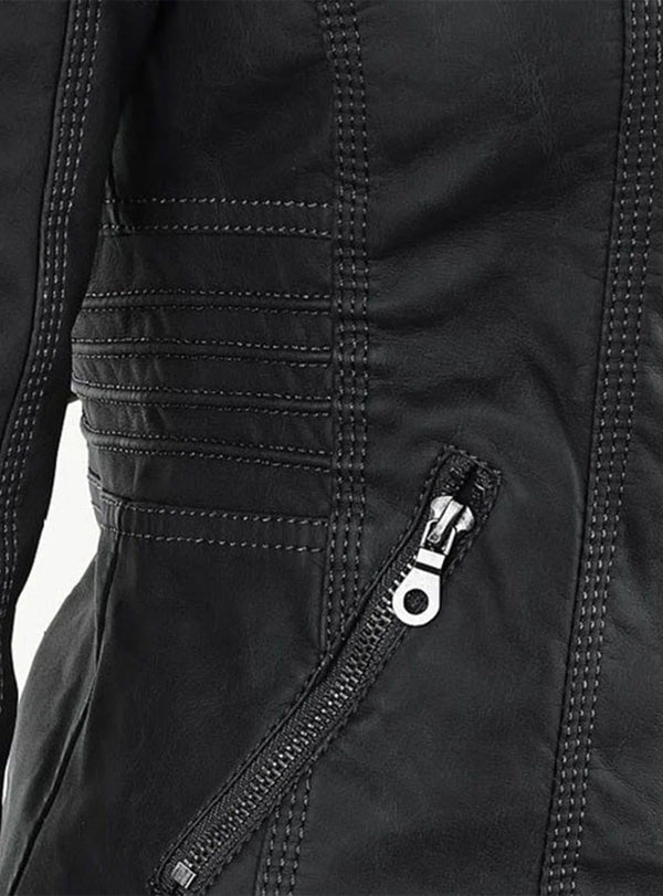 “The Monika jacket combines durability with a fitted silhouette. The detachable hood gives you flexibility across different looks. Built for everyday wear and made to hold its shape over time.”